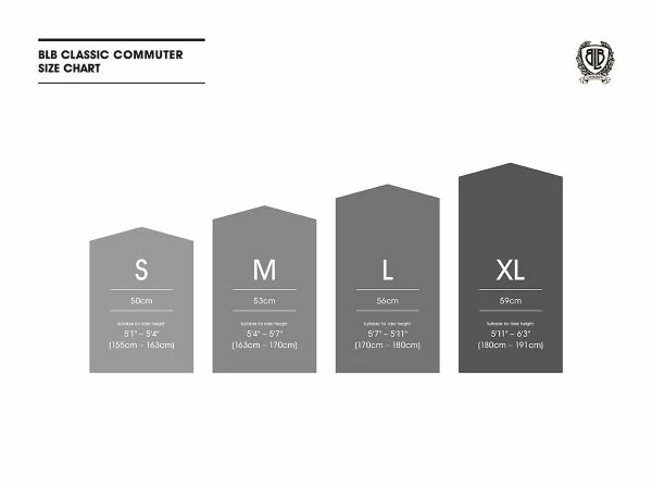 - Größen: 50cm, 53cm, 56cm oder 59cm