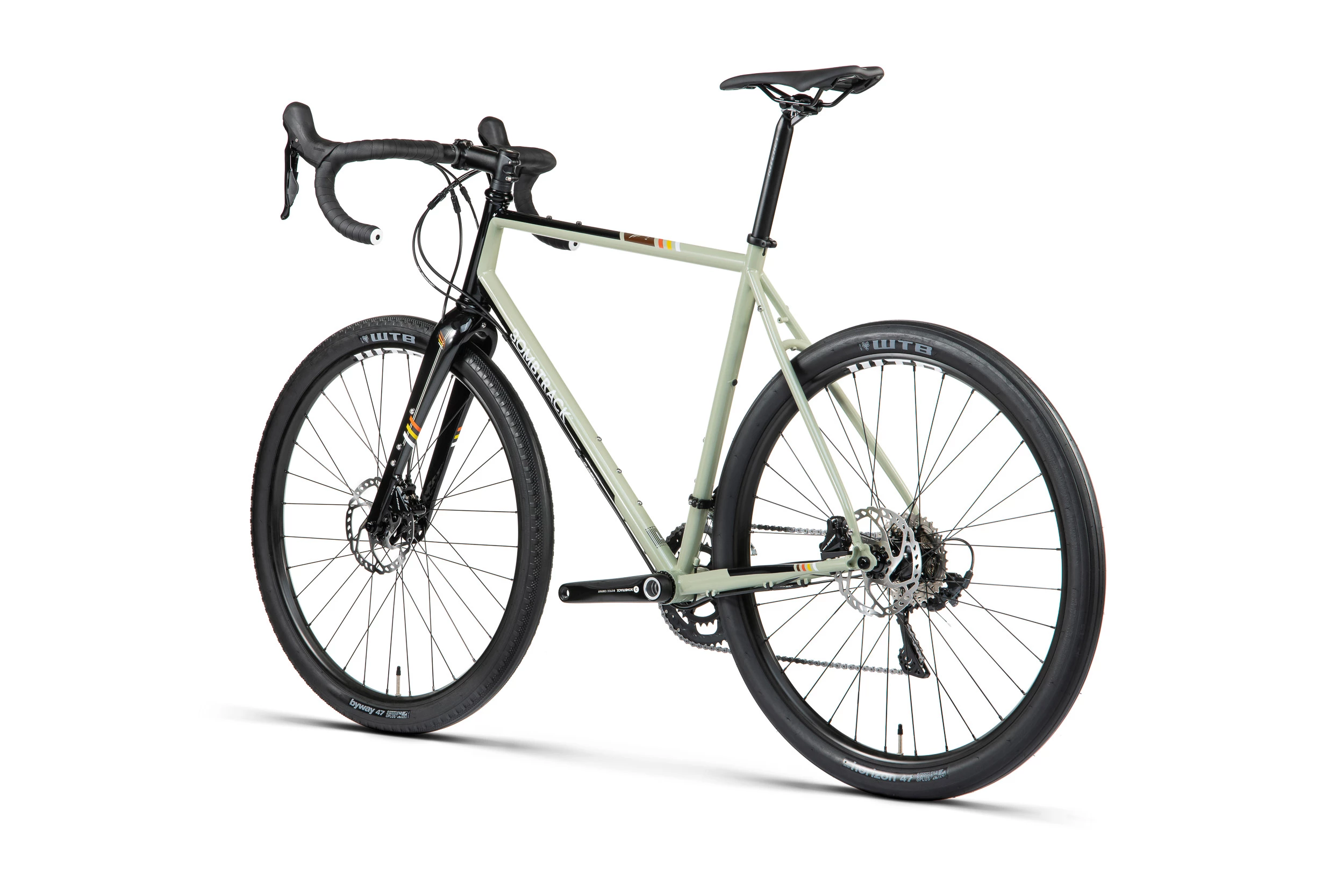 Gebaut aus hochwertigen, doppelt-konfizierten Columbus Cromor für perfektes Gleichgewicht zwischen Gewicht und Stabilität für ausgedehnte Graveltouren. Die gerade und extra breite Carbongabel bietet einen Dreifach-Mount und eine 12mm Steckachse. Ausgestattet mit der neuen Bombtrack Lyer 30mm Aluminium Kurbel und 2-fach Kettenblätter ist jede Steigung möglich – auch mit Gepäck. Sowohl die Reifen, als auch die Felgen sind tubeless-fähig und kommen beide aus dem WTB Werk.