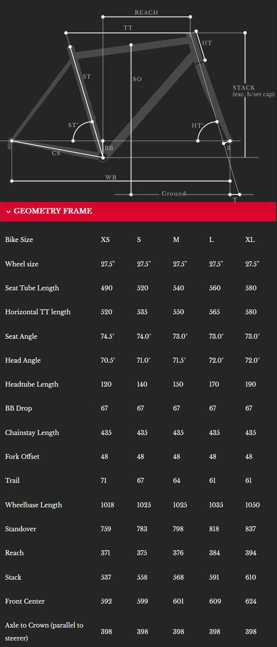 Durch die Verwendung von hydraulischen Scheibenbremsen, die bei allen Witterungsbedingungen hervorragende Bremsleistung bieten. Zudem wurde auch der Rahmen bis ins kleinste Detail für die höchsten Ansprüche gebaut und beispielsweise mit gegossenen antriebsseitenen Versteifungsbügel ausgestattet, T47 Innenlager, extra Flaschenhalter-Befestigung am Unterrohr, eine spezielle Fuel-Bag Befestigung am Oberrohr und eine nahezu unsichtbare Kabelverlegung für eine Dropper-Seatpost.