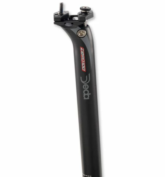 Die Deda Zero100 Sattelstütze besteht aus einer 2014 Aluminium-Legierung, die in einer eigenen 3D Schmiede Methode hergestellt wird, um die Lebensdauer zu maximieren. Diese Art von Kaltschmieden bewahrt die Struktur der Legierung deutlich besser als typische CNC gefräßte Legierung. Bei dem 3D-Schmiedeprozess wird ein spezieller Schmierstoff verwendet, um die Wandstärke dünn und damit die Stütze leicht zu halten. Die Zero100 hat den gleichen Klemmmechanismus für die Feineinstellung der auch in der Deda Superzero Carbon Sattelstütze verwendet wird. Die Deda Zwei-Schrauben Klemmung ermöglicht es Ihnen, die Sattel Position sehr genau und sicher einzustellen. Die Aufnahme ist mit Vanox, Carbon oder Titan Sattel Schienen kompatibel. Die Stütze ist in 27,2 und 31,6 mm Durchmesser erhältlich, ist 310 mm lang, und hat einen Versatz von 12 Millimetern