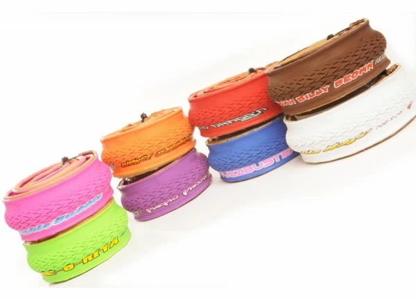 Der Fixie Pops von Duro ist ein robuster Faltreifen der designed für die harten Beanspruchungen beim Skidden mit verstärkter Lauffläche. Das negative Profil hält härtesten Bedingungen stand und sorgt für optimalen Grip. Erhältlich in verschiedensten Farben um wirklich jedes Rad individuell gestalten zu können.