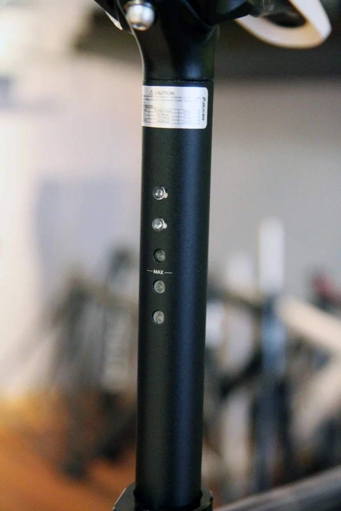 Die Steuerung der Sattelstütze ist enorm simpel gelöst. Bedient wird die Rückleuchte durch den zweiten LED-Knopf. Damit lässt sie sich An- und Ausschalten sowie auch ziwischen dem 3-LED oder 5-LED Modus wechseln.