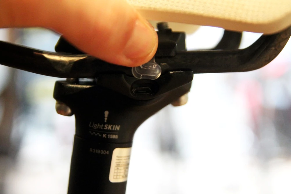 Die bewährte Sattelstütze wurde von LightSKIN überarbeitet: Der Akku ist nun im Inneren verbaut und via Micro-USB aufladbar. Eine Demontage der Stütze ist nicht nötig, denn der Micro-USB-Zugang befindet sich an der Sattelklemme, ein Ladekabel wird mitgeliefert.