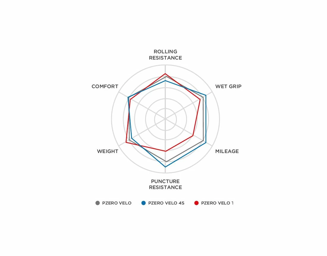 Zur Feinabstimmung der Reifenprofile von P Zero™ und P Zero™ Velo 4S (das TT Modell ist ein reiner Slick) nutzte Pirelli das vom Motorsport inspirierte Groove Design. Das Profilmuster, welches nicht nur eine ästhetische Funktion hat, ist angelehnt an das vom Diablo Supercorsa, einem der besten SSP Reifen (SuperSport-Klasse der World SuperBike Rennserie) von Pirelli. Winkel, Querschnitte und Abstände des Profilmusters wurden genau untersucht, um seine Performance bei Wasserableitung, Trocken- und Nasshaftung, Laufleistung, Reaktionsverhalten sowie Fahrkomfort und Handling zu optimieren. Das Reifenprofil erinnert an Blitze und bildet in der Mitte der Lauffläche sehr spitze Winkel mit ausgeprägten lateralen Öffnungen an den Seiten für optimierte Wasserableitung und glattes Abrollverhalten sowie gleichmäßige Abnutzung. Zusätzlich verfügt das Reifenprofil über progressive Tiefe für verbesserte Haltbarkeit und optimale Kontrolle selbst in extremer Kurvenlage. Die Lauffläche der P Zero™ Velo ist aus drei verschiedenen Abschnitten aufgebaut: die Mitte besteht aus einer glatten Oberfläche für optimalen Geradeauslauf, auf beiden Seiten schließen stärker profilierte Bereiche an für optimales Kurvenverhalten, die in Semi-Slick Ränder übergehen für unmittelbare Rückmeldung im Grenzbereich bei Kurvenfahrt. Das Ergebnis ist optimaler Reifenkontakt unter allen Fahrzuständen.