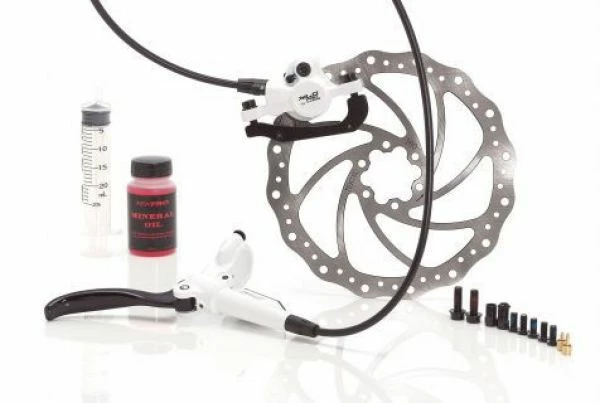 Mit der XLC Pro Disc-Brake BR-D01 bietet XLC eine qualitativ hochwertige und funktionelle hydraulische 2-Kolben Scheibenbremse an. An den Bremshebeln der BR-D01 sind je ein Bremsflüssigkeits-Ausgleichsbehälter montiert. Damit wird eine Neubefüllung und Entlüftung der Bremse zum Kinderspiel. Die leichten Aluminium-Bremshebel sind mit einer Griffweitenverstellung ausgerüstet und universell rechts oder links verwendbar. Desweiteren verfügt die Bremse über einen automatischen Belagsverschleißausgleich. Die Bremsleitungen sind für jedes Fahrrad anpassbar und individuell kürzbar. Befestigt wird die Bremse nach internationalem Standard IS 2000. Als Bremsmedium kommt bei der BR-D01 Mineralöl zum Einsatz. Erhältlich ist die Disc-Brake BR-D01 als Vorderradversion mit einer 180 mm Bremsscheibe und als Hinterradversion mit einer 160 mm Bremsscheibe. Im Lieferumfang enthalten ist ein kompletter “Repair-Kit” mit Spritze und Mineralöl.