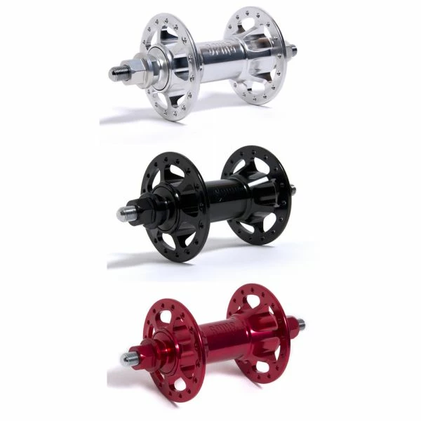 Spike Track Bahnnaben werden auf einem Stück 6061 Aluminium CNC-gefräst. Es werden hochwertige Industrielager eingebaut, die eine langen seidenweichen Lauf versprechen. Die Achse wird aus gehärtetem CroMo 4130 Stahl hergestellt und gewährleistet beste Stabilität und Steifigkeit.