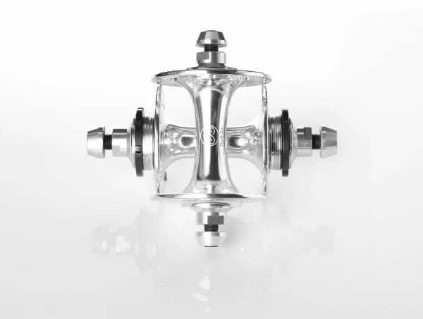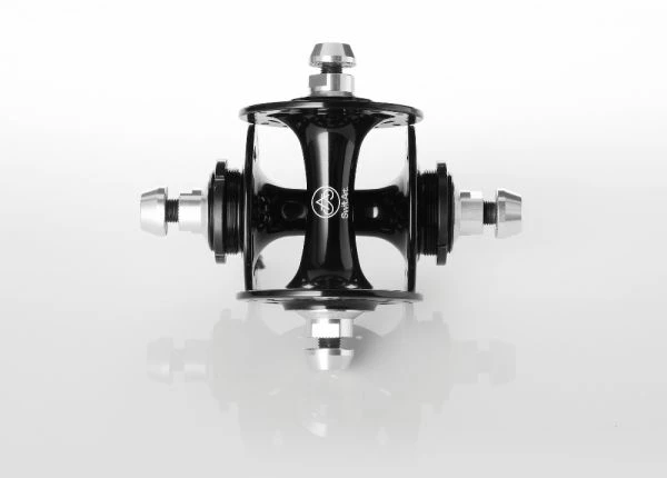 - Symmetrische Nabenflansche, leicht angeschrägt zum optimalen Verlauf der Speichen